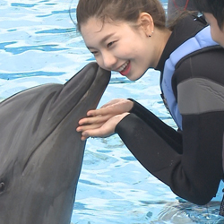 <우리 결혼했어요> 김진경, 돌고래 재롱에 "제일 귀여워~" 조타 질투심 폭발! 김진경이 돌고래로부터 볼뽀뽀 세례를 받는 모습이 포착돼 시선을 모은다.