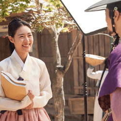 공개된 스틸 속 김민서는 보랏빛 저고리의 한...