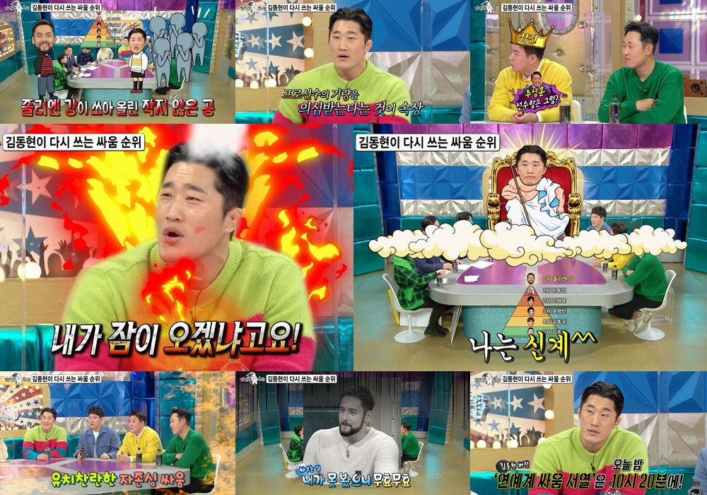 ‘라스’ 김동현, 줄리엔강 ‘싸움 서열’ 발언 듣고 잠 못 자! 종합격투기 선수이자 프로 예능인 김동현이 '라디오스타'에 출연해 줄리엔강이 연예계 싸움 서열을 언급한 후 잠 못 이룬 이유를 고백한다. 또 ‘파이터 전문가’ 김동현은 자신이 생각하는 연예계 싸움 서열 TOP4를 정리...