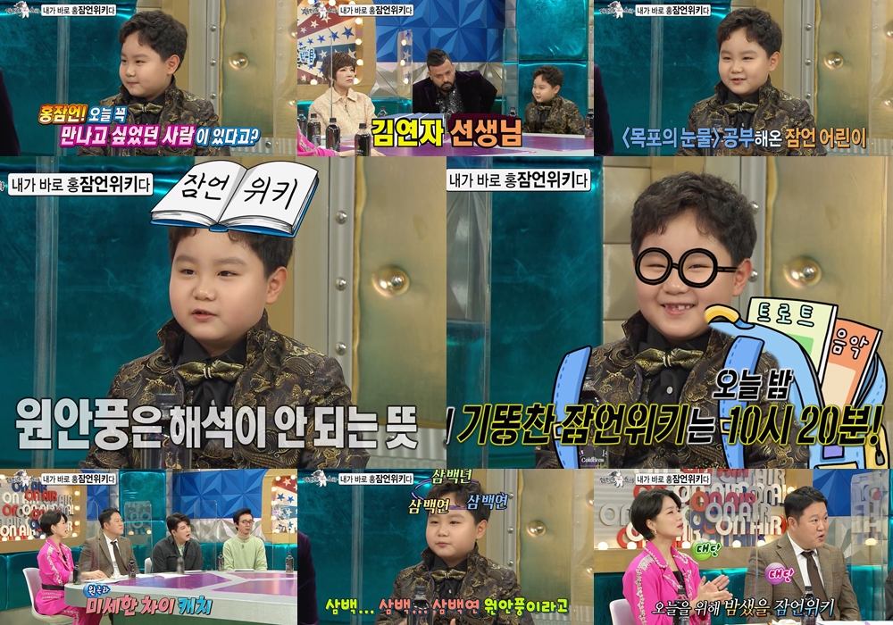 '라디오스타' 2011년생 홍잠언, 1935년作 '목포의 눈물' 찰떡 설명 가수 홍잠언이 '라디오스타'에서 인생 2회 차 포스를 풍긴다.