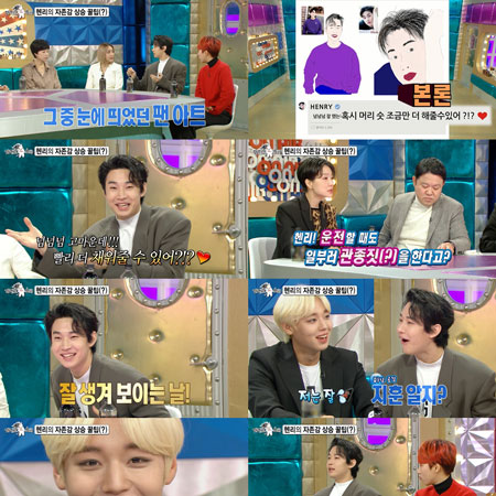 헨리, 팬아트에 "넘넘넘 잘했는데 머리숱 조금만 더 해줄 수 있어?" 음성지원 댓글 남긴 이유 (라디오스타) 가수 헨리가 팬이 그려준 예쁜 마음 가득한 팬아트에 ‘음성 지원’ 댓글을 달았던 이유를 공개해 웃음을 유발했다. 또 헨리는 자존감을 수직 상승시키는자신만의 ‘잘생김’ 자랑 꿀 팁을 공개해 시선을 모았다.