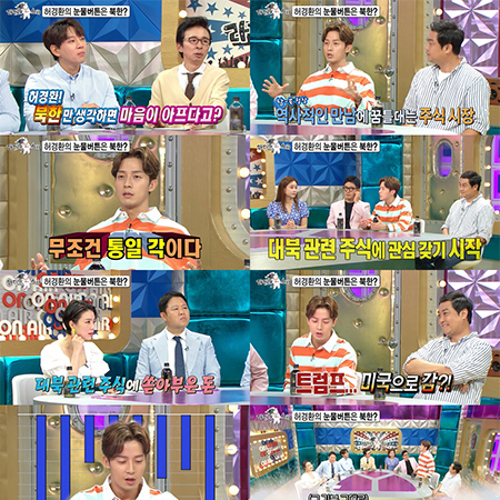 '라스' 허경환, 그의 눈물 버튼은 북한? "주식이 폭포수처럼…" 허경환이 북한 때문에 폭포수 눈물을 흘린 썰을 공개했다. 북미정상회담 결렬로 안타까운 결말은 맞은 그의 '웃픈' 사연이 폭소를 자아냈다고.