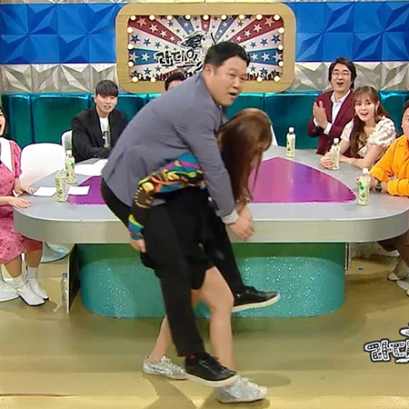 '라디오스타' 윤은혜, 김구라 업고 스튜디오 활보! 여전한 '소녀 장사' 배우 윤은혜가 김구라를 거뜬히 업고 스튜디오를 활보하며 여전한 '소녀 장사' 파워를 보여준다.