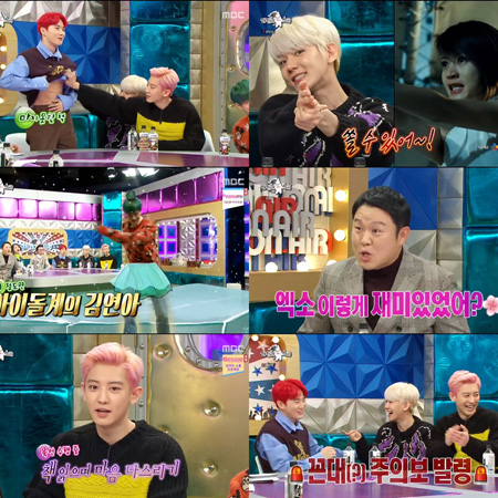 4일 방송된 MBC 예능프로그램 ‘라디오스타’는 ‘엑소클라스’ 특집으로 엑소 수호, 백현, 찬열, 카이, 세훈 그리고 스페셜 MC로 활약한 첸이 출연했다.