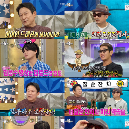 ‘라디오스타’ ‘아이언 드래곤’ 김응수, 곽철용 ver. CF 패러디(Feat. 위염) 김응수가 누리꾼이 만든 곽철용 광고를 시연했다.