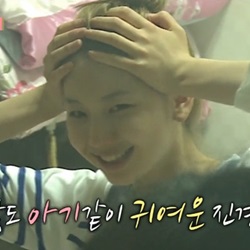 이날, 김진경은 잠자리에 들기 전 메이크업을 지우며 민낯을 공개했다.