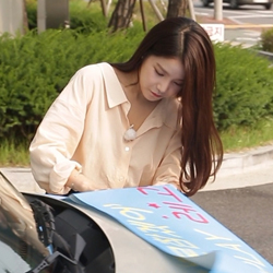 이날, 솔라는 남편의 신곡 홍보를 위해 차에 직접 홍보 스티커를 붙이며 적극...
