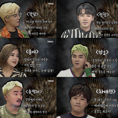 MBC 예능프로그램 <라디오스타> 공식 홈페이지에는 29일(수) 방송분 '밖으로 나가 버리고' 특집의 라인업이 공개됐다. 공개된 영상 속에는 홍수아, 김용만, 김경민, 천명훈이 자리해 셀프영상으로 직접 홍보에 나섰다.