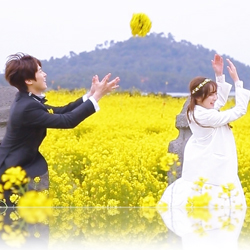 이날, 두 사람은 아름다운 유채꽃밭에서 결혼식을 올렸다.