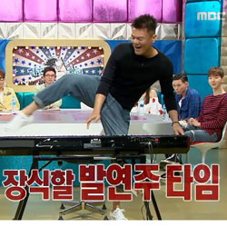 11일 방송된 MBC 예능 프로그램 <황금어장-라디오스타> 477회에서는 ‘JYP의 수장’ 박진영이 출연해 맨발로 건반을 연주하는 모습을 선보였다.