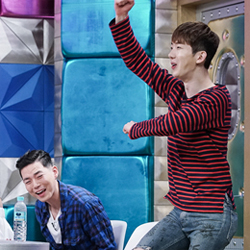 <라디오스타> 조권의 돌아온 ‘깝댄스’에 박진영 눈 가리고 경악! 조권이 박진영에게 ‘깝 커밍아웃’을 했다. 박진영 앞에서 한번도 깝댄스를 춘 적이 없다는 그는 트와이스 노래에 맞춰 춤을 추는가 하면, 전매특허인 털기춤까지 보여줘 박진영을 경악케 만들었다고 전해져 이목이 집중되고 있다.