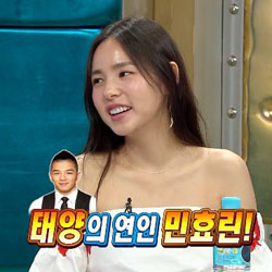 11일 방송된 MBC 예능 프로그램 <황금어장-라디오스타> 477회에서는 배우 민효린이 출연해 공개 연인인 빅뱅 태양과의 연애 비하인드 스토리를 최초 공개했다.