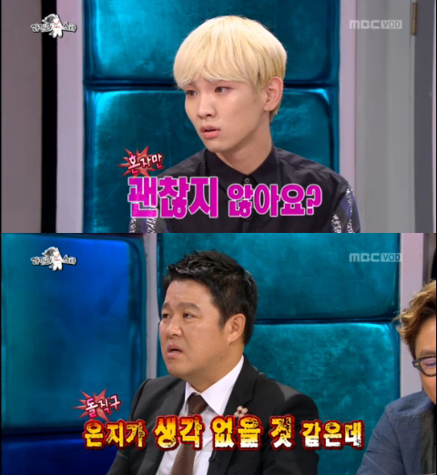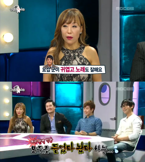11일 밤 방송된 MBC <황금어장-라디오 스타>는 ‘나 개랑 산다’ 편으로 꾸며진 가운데 성악가 조수미, 가수 강타, JK 김동욱, 엠블랙 지오가 출연해 입담을 과시했다.