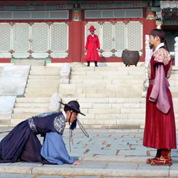 공개된 사진 속에는 김희정이 의자에 앉아 <화정> 촬영...