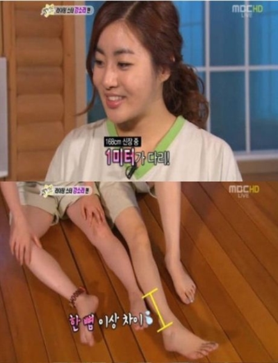<섹션TV> 강소라 다리길이 직접 재보니..1m가 넘어? 배우 강소라가 비현실적인 다리길이로 화제다. 강소라는 1일 방송된 MBC <생방송 섹션TV 연예통신> '라이징 스타'에 출연해 리포터 박슬기와 함께 자신에 관한 다양한 이야기를 소개했다. 그러던 중 박슬기가 강소라의 각선미를 언급했고 급기야 직접 줄자...