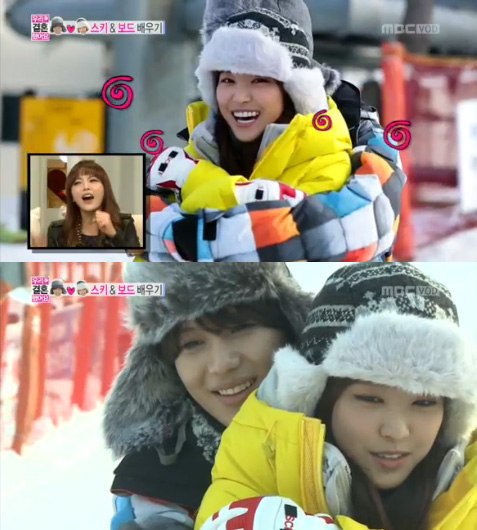 이날 태민과 나은은 흰눈이 펼쳐진 스키장에서 스키와 보드를 서로 가르쳐주고 배우기도 하...