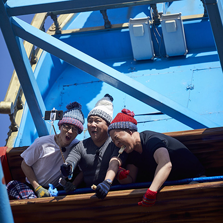 '무한도전' 유재석-정준하-조세호, 월미도에서 포착! 반팔 입고 바이킹 체험? ‘무한도전’ 유재석-정준하-조세호가 최악의 추위 속 스릴의 최고봉인 월미도 바이킹에 탄 모습이 포착됐다. 특히 세 사람은 얇은 반팔에 슬리퍼를 신고 아이스크림까지 먹으며, 극한의 ‘이한치한’ 바이킹 체험을 하고 있어 시선을 강탈한다.