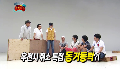 <무도> 추억의 동거동락 완벽재현 - 깨알 웃음 선사! <무한도전>은 20일 방송에서 13일 방송에 이어 `우천시 취소` 특집 2부를 방영했다.