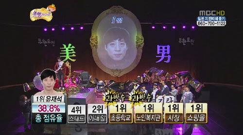 인기냐 외모냐, <무도- 미남> 유재석 유력! MBC <무한도전>이 특집 방송에서는 지난 일본 촬영 중에 불거진 외모 종결자를 가리기 위한 ‘미남이시네요’에서 개그맨 유재석이 국내 현장투표 최고 미남으로 뽑혔다....