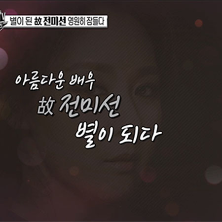 '섹션TV 연예통신' 별이 된 아름다운 배우 故전미선 영원히 잠들다 4일 방송된 ‘섹션TV 연예통신’에서는 하늘의 별이 된 배우 故전미선에 대해 방송했다.