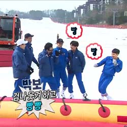 <무한도전> 멤버들과 얼굴천재 박보검, 이들의 동계 스포츠 자존심 대결은 봅슬레이에 이어 이번 주 방송에서는 빙판에서 그 열기를 이어간다.