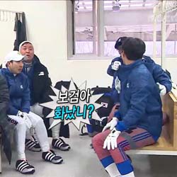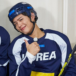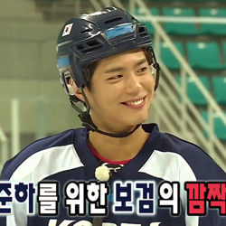 공개된 사진에는 박보검이 아이스하키 풀 착장을 한채 엄지를 치켜올리고 있다. <무한도전> 멤버중 누군가의 어깨에 살짝 기댄 듯 비스듬히 앉아 아...