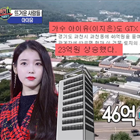 지난 7일 한 매체는 아이유가 46억원으로 매입한 경기도 과천과 토지가 GTX 사업의 수혜로 1년 만에 2...