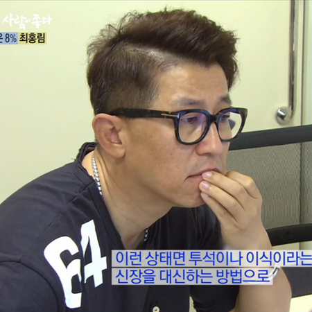 3일 방송된 MBC <휴먼다큐 사람이 좋다> 에서는 방송인 최홍림이 말기 신부전증으로 충격을 안기는 모습이 그려졌다.