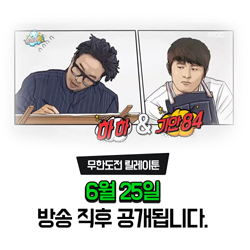 25일(토) 오후 6시 20분에 방송되는 MBC 예능프로그램 <무한도전>에서 드디어 ‘릴레이툰’의 첫 화가 공개된다.