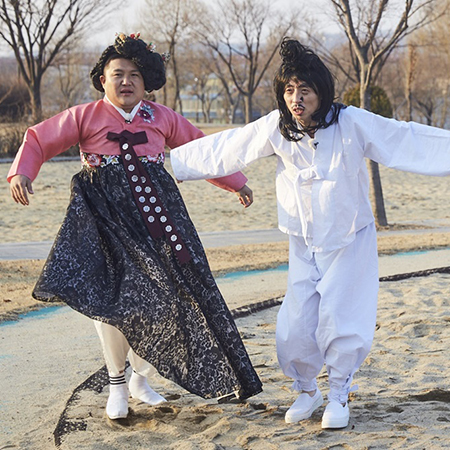 '무한도전' 유재석-조세호, 인면조와 황진이 변신! '충격 비주얼' ‘무한도전’ 유재석-조세호가 인면조와 황진이로 변신해 환상의 춤판을 펼친 모습이 공개됐다. 유재석은 하얀 한복과 강렬한 눈썹 그리고 검은 가발로 인면조에 빙의한 듯 춤사위를 펼치고 있는가 하면, 조세호는 고운 핑크빛 한복을 입고 가채까지 올려 영...