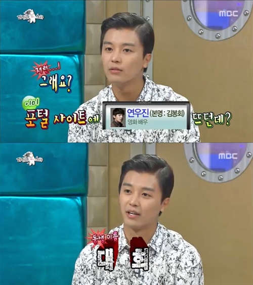 MC들은 연기자 연우진이 소개되자 놀리기에 바빴다. 연우진의 본명은 외모와는 차이가 있는 분위기의 '김봉회'였던 것. MC 윤종신은 처음에는 본명을 밝히기 꺼려졌는지 <오작교 형제들> PD가 본명을 묻자 얼버무렸을 정도로 본명을 밝히기 싫어했다고 전했다. 이에 대해 묻자 연우진 역시 당황해하며 본명 공개에 얽힌 사연을 말했다.
