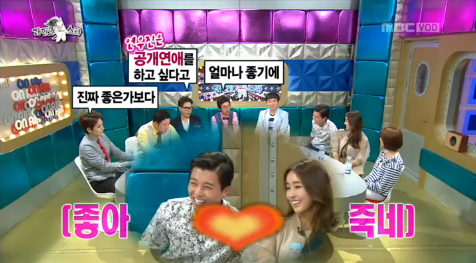 이어 "연애를 하면 공개연애를 하고 싶다"고 연우진이 말하자 날카록운 MC들이 장난기를 발동시켰다. 연우진과 정유미의 호감 기류를 읽은 MC들은 집요한 질문 공세를 펼치며 당황해하는 연우진을 압박했다.