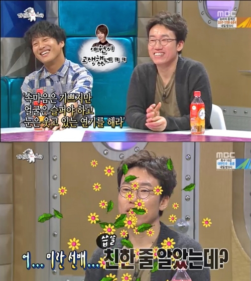 24일(수) 방송된 MBC 수요예능프로그램 <황금어장-라디오스타>에서는 얼굴에 유약함이 묻어있는 남자들과 함께하는 '널~ 깨물어주고 싶어' 특집에 배우 차태현, 김강현, 영화감독 김영탁이 출연해 함께 즐거운 에피소드를 나눴다.