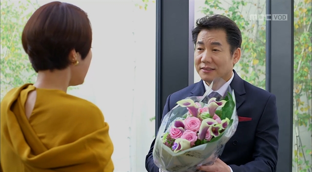 1일 방송된 MBC 주말드라마 <장미빛 연인들> 에서는 영국(박상원)이 이혼을 요구한 연화(장미희)에게 이혼할 생각이 없다며 연화를 달래는 모습이 그려졌다. 이날 영국은 갤러리에서 집무를 보고 있던 연화를 찾아가 꽃다발을 내밀며 데이트를 신청했다.
