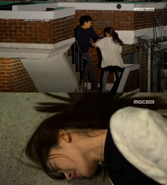9일(일) 방송된 MBC 주말드라마 <장미빛 연인들>에서는 생활고로 인해 차돌(이장우)가 다투던 장미(한선화)가 계단에서 구르는 모습이 그려져 긴장감을 자아냈다.