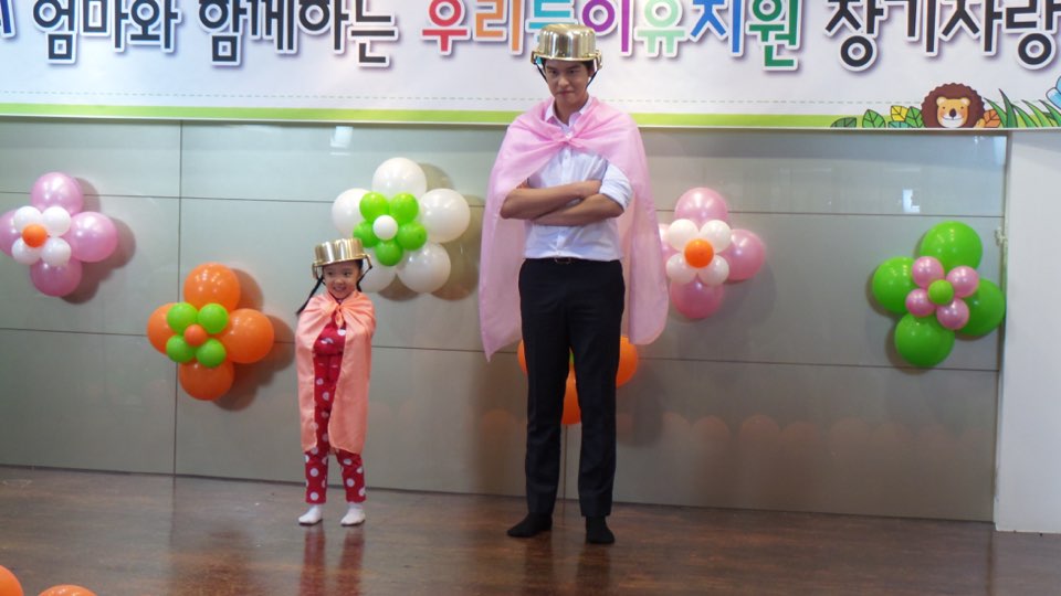 공개된 사진에서 이장우는 딸 이고은과 함께 지난해 선풍적인 인기를 모았던 크레용팝의 댄스곡 ‘빠빠빠’ 안무를 선보이고 있다. 머리엔 헬멧 대신 양은냄비를 눌러쓰고, 망토 대신 보자기를 두른 채 코믹한 분장으로 중독성 있는 댄스를 소화해냈다.