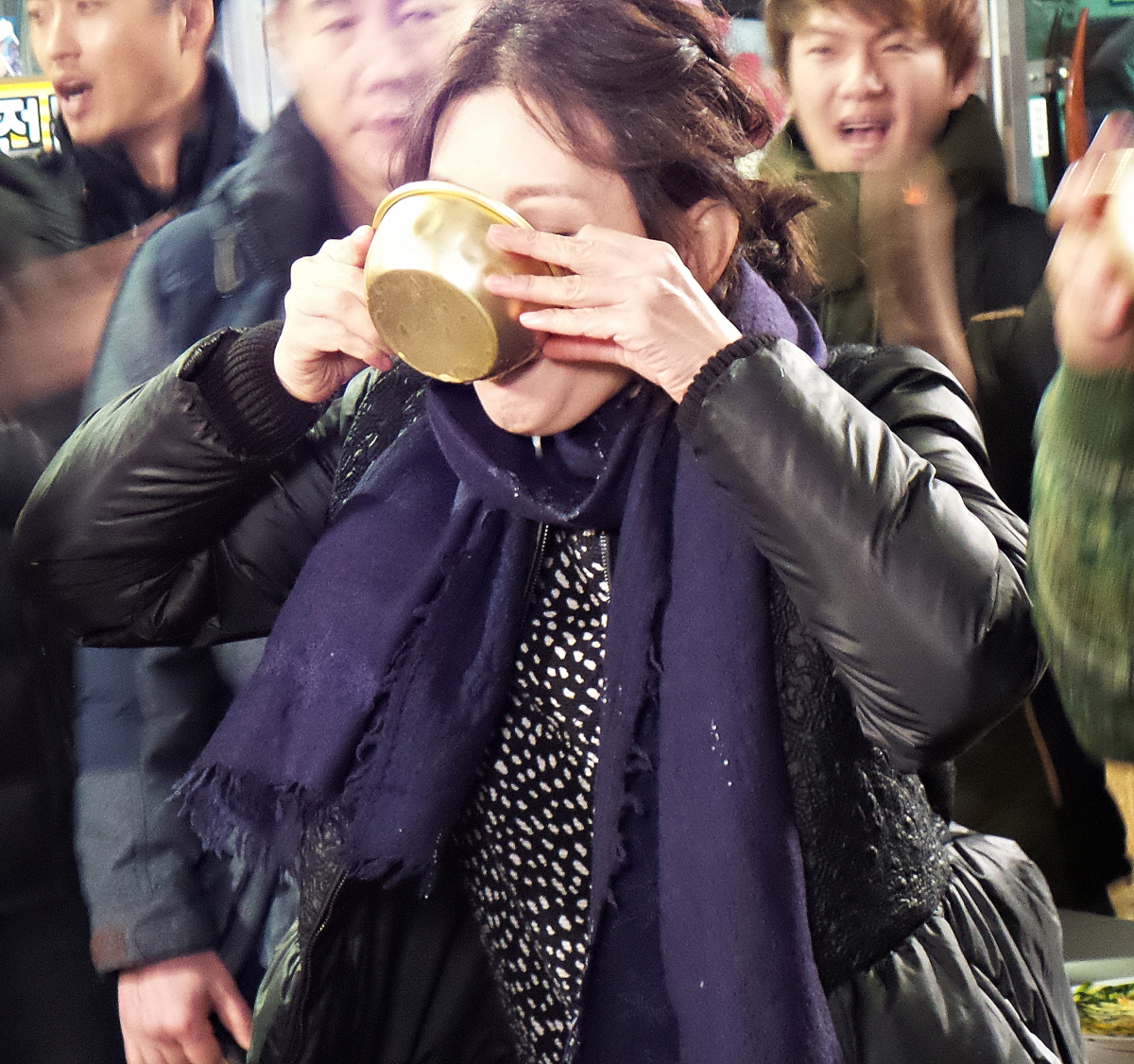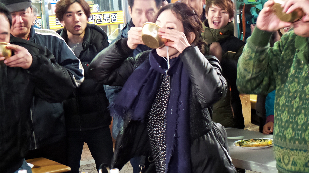 황당해하며 만류하는 박상원을 뿌리치며 “내가 막걸리는 자신있거든!” 하고 주당들 사이에서도 기죽지 않고 술을 들이키는 이미숙. 죽기살기로 마신 끝에 최종 3인으로 살아남아 ‘용감한 대한민국 아줌마’임을 인증받았다.
