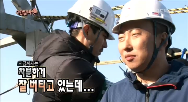 제작진이 준비한 첫 번재 극한알바 체험으로 63빌딩의 13,516장의 유리창을 수작업으로 닦는 일에 함께 도전하기로 한 박명수와 차승원! 두 사람은 함께 곤돌라에 올랐다.