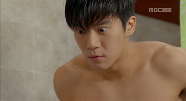 이어 우석이 샤워중에 있다는 사실을 모른채 욕실로 들어간 수인은 샤워를 마치고 나온 우석과 마주쳤고 너무 놀란 우석은 급하게 욕실에서 나오다 비누를 밟고 넘어질 뻔 했고 이를 본 수인은 우석을 잡아주다 같이 넘어지면서 첫 입맞춤을 하게 되었다.
