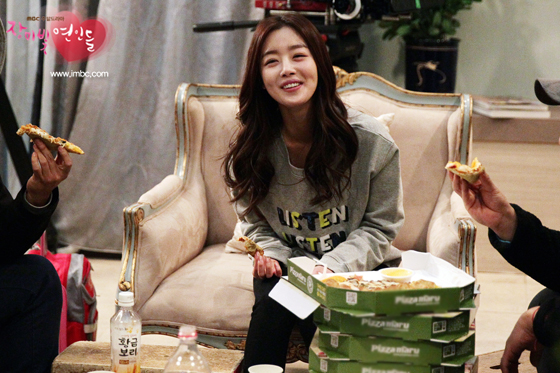 한선화가 <장미빛 연인들> 촬영장에 피자를 선물했다.
