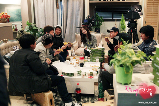 지난 10일(수) 여의도 MBC 내 한 세트장에서 진행된 MBC 주말드라마 <장미빛 연인들> 촬영장에는 스태프들을 위한 피자가 배달되었다. 여주인공 장미 역할을 맡아 열연 중인 한선화가 추위에 밤낮 없이 고생하는 스태프들을 위해 깜짝 파티를 연 것.
