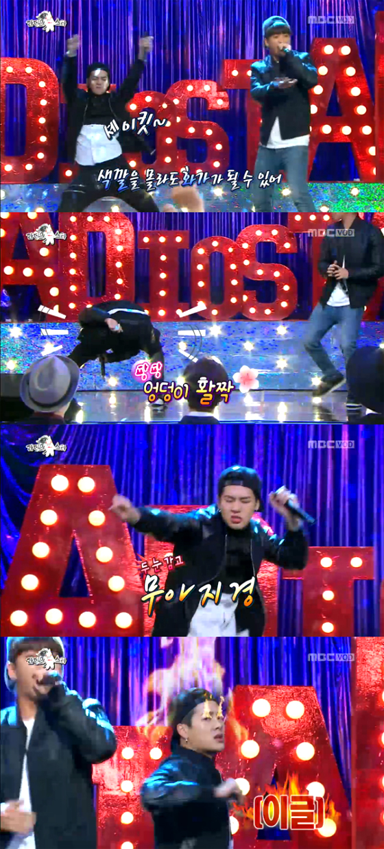 17일(수) 방송된 MBC 예능프로그램 <황금어장-라디오스타>에서는 배우 윤현민, 가수 바다, 잭슨, 바로가 출연한 '내 허벅지는 돌벅지'특집이 진행된 가운데, 유쾌한 두 남자아이돌의 시원한 속풀이송이 시청자들의 눈길을 모으고 있다.