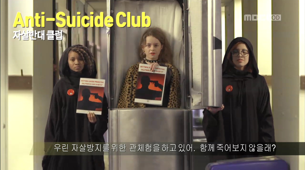 ▶Anti-Suicide Club(자살 반대 클럽)"우린 자살방지를 위한 관체험을 하고 있어. 함께 죽어보지 않을래?"