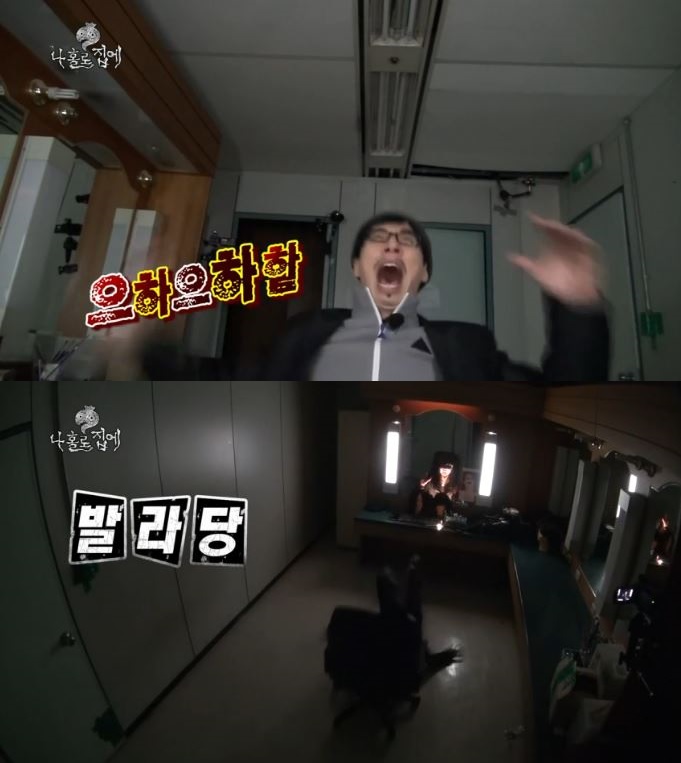 10일(토) 방송된 MBC예능프로그램 <무한도전>에서 유재석이 귀신 등장에 깜짝 놀라 바닥을 구르는 모습이 그려졌다.