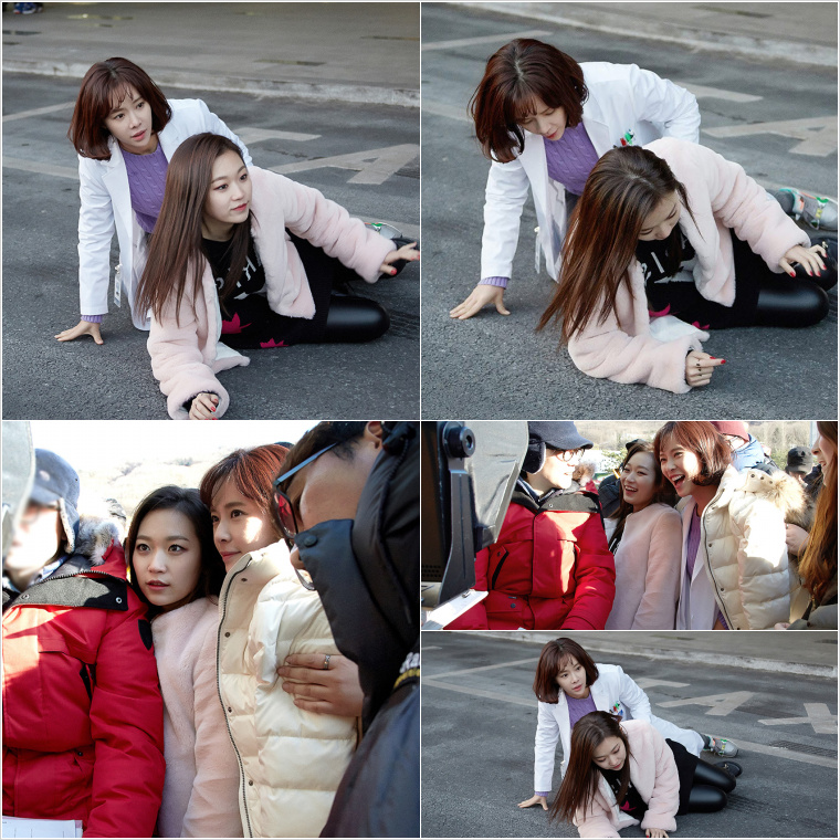 황정음과 김슬기의 ‘아스팔트 액션 장면’은 지난 1일 인천에 위치한 한 병원 앞에서 이뤄졌다. 황정음과 김슬기는 3시간 30분가량 계속해서 달리고, 얼음장 같은 아스팔트를 구르는 액션 신을 촬영하며 체력 소모가 매우 컸음에도 긍정적인 에너지로 현장에 활력을 더했다. 더욱이 황정음은 감기로 인해 컨디션까지 난조였지만, 몸을 사리지 않는 열혈 연기로 기대를 저버리지 않고 생동감 넘치는 장면을 만들어내며 스태프들의 찬사를 받았다.
