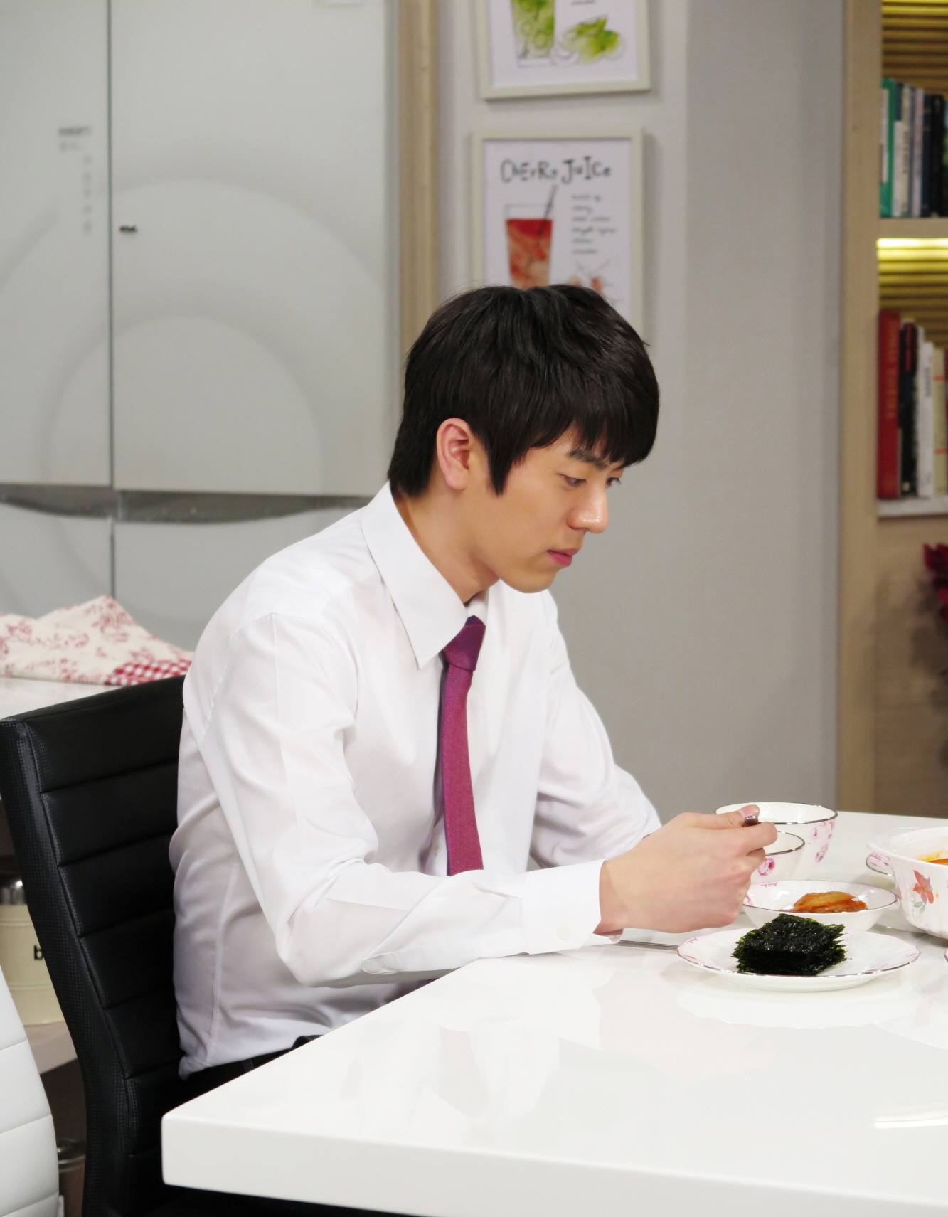 MBC 새 일일연속극 <불굴의 차여사>의 현장포토가 공개된 가운데, 넥타이 차림에 앞치마를 두르고 있는 기준(신민수)가 주눅이 든 모습이 그려졌다.