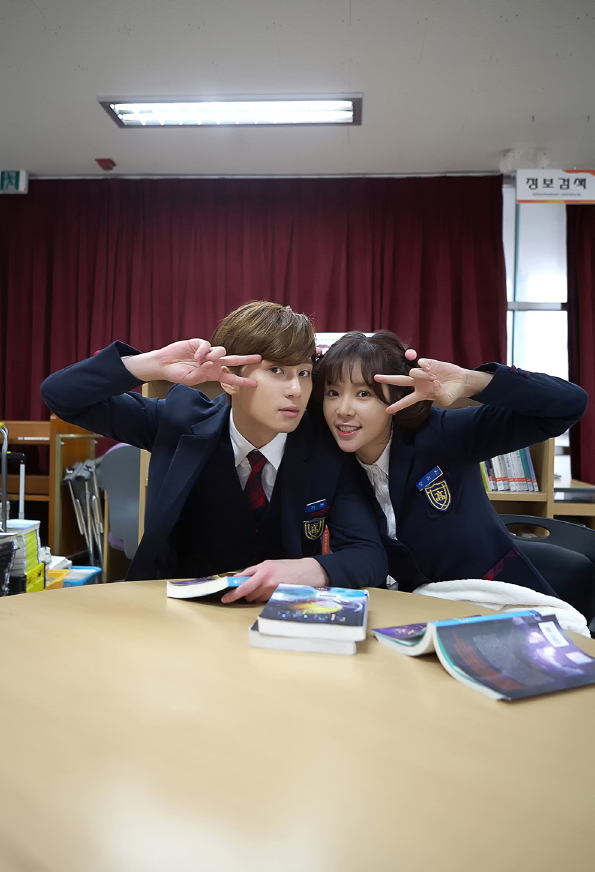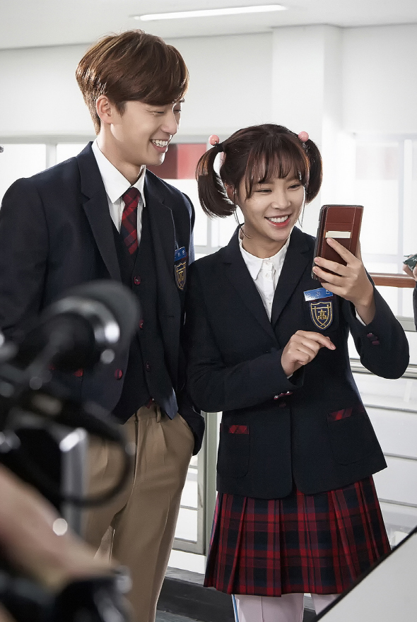 황정음과 박서준이 고등학생으로 회귀한 장면은 지난 26일 서울 마포구 상암동의 한 중학교에서 촬영됐다. 이 날 황정음과 박서준을 비롯한 전 출연진들이 고등학생 연기에 완전히 심취, 실제 학교 쉬는 시간 같은 왁자지껄한 분위기를 형성했다.