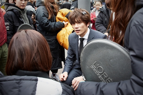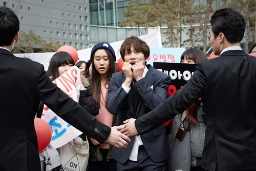 이와 관련 지성이 독보적인 ‘비글 소녀’로 신들린 ‘빙의 연기’를 펼쳤던 현장이 포착, 눈길을 끌고 있다. 양복을 그대로 입고 머리에 핀만 꽂은 ‘현실 버전’과 핑크 교복을 입은 ‘상상 버전’으로 두 번에 걸쳐 같은 장면이 반복됐음에도 불구, 한 치의 흐트러짐 없는 집중력으로 촬영을 주도했던 것. 또한 소녀팬들의 무리로 뛰어드는 장면에서는 보조출연진들에게 “날 멋진 언니라고 생각해”라고 집단 최면을 시도, 현장에 웃음꽃을 피워냈다. 상상을 초월한 지성의 완벽한 여고생 변신이 지켜보던 스태프들까지 깜짝 놀라게 만들었다는 후문이다.