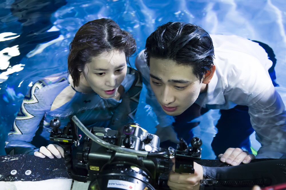 김성령·이종혁·이성경·윤박 주연 4인방이 수중촬영 교육에 몰두하고 있는 스틸 컷은 포스터 촬영을 위한 것.