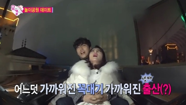놀이기구가 출발하자, 홍진영은 몸을 점점 남궁민에게 밀착하며 뒤로 누운 듯한 자세를 취했고 안전벨트 대신 남궁민의 팔에 안겨 출산에 임박한 모습을 취해 웃음을 자아냈다.